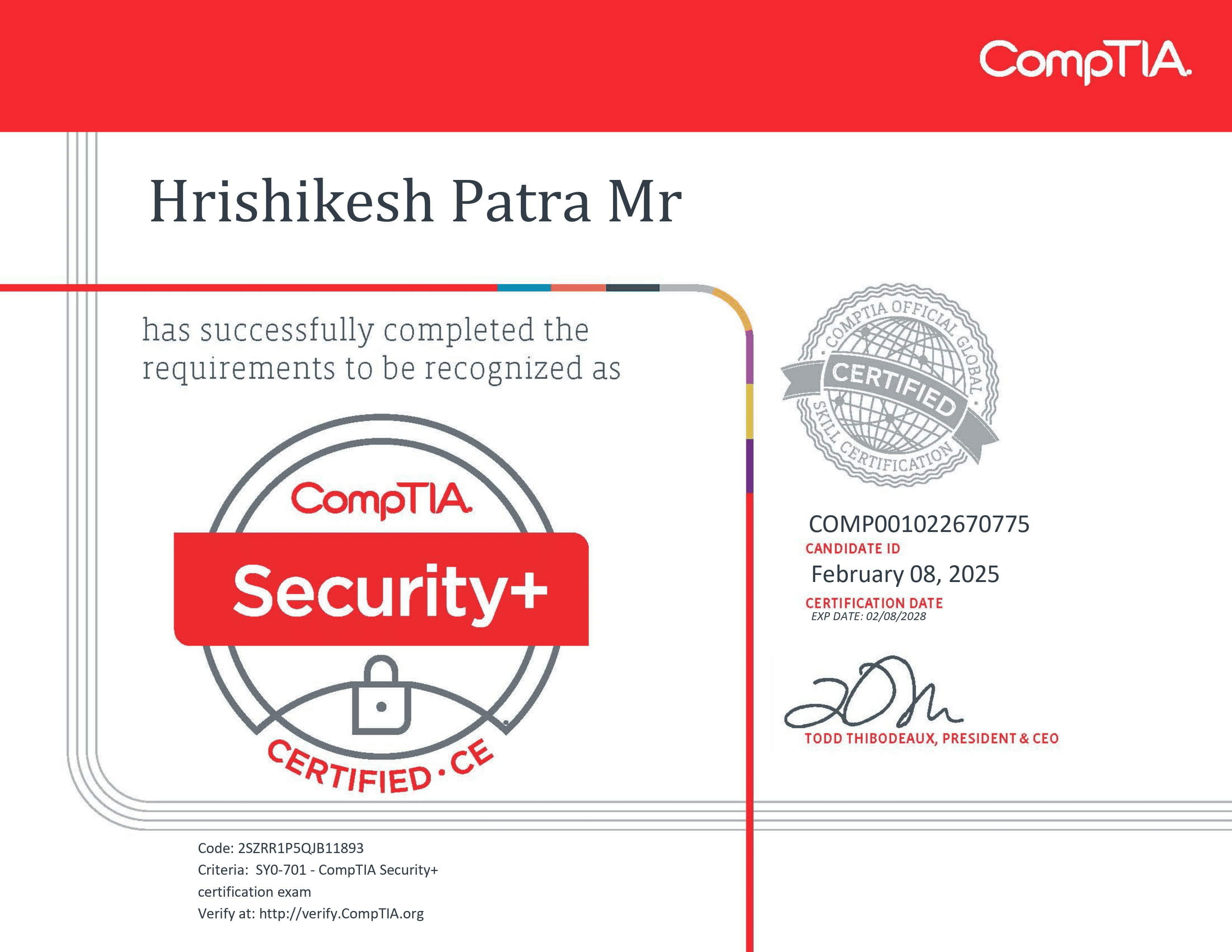 I'm Hrishikesh Patra, a Cybersecurity Professional